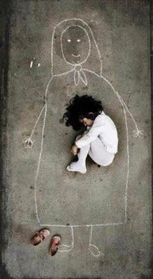一個孤兒院的孩子 ,她在地板上畫了一個媽媽。然後想像著,在媽媽溫暖的懷裡睡著了……這是伊朗女藝術家所拍攝的一家伊拉克孤兒院的場景。