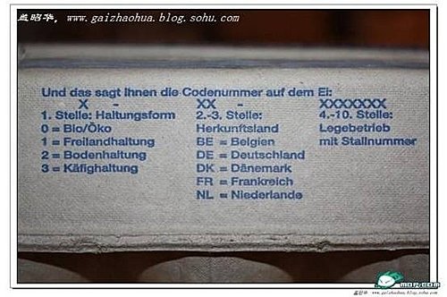4-10位號碼表明產蛋企業以及飼養籠子的號碼。有了這些編碼,雞蛋品質只要有半點問題,食品監測部門就會順藤摸瓜,一直追查到生產商!