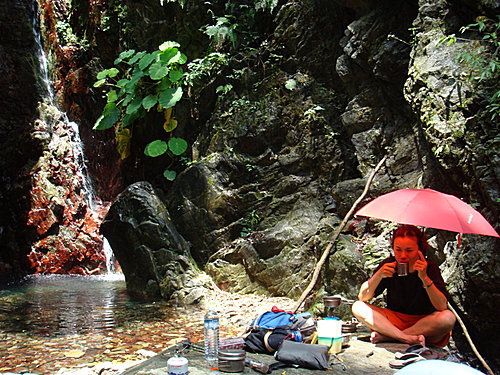 蝴蝶谷瀑布,海拔約880公尺 ,位於唐麻丹山稜脈,裡冷溪上遊的人間仙境。瀑布約有20公尺 的落差,瀑潭水清如鏡,雖不見蝴蝶飛舞,卻足以讓人忘憂,彷彿置身仙境之中。 此行由台八線29公里處的松鶴部落進入,在台8線29K處右轉松鶴橋,過橋後立刻左轉,大約300公尺 之後右轉,順著神農谷以及大本松原森林花園的路標,沿著蠻小條的產業道路上山,越到後面路越陡越小,爬過一個陡坡走到底左轉就可以看到果園農家,農家很熱情好客,把車停在這裡就可以了。要注意的是這段產業道路後段有點濕滑,上坡時車子容易打滑,這一點上山時要務必注意。 我的最佳伙伴!維鴻! 初次見面的新朋友!陳先生 從遙遠的 屏東來的朋友!讚啦! 屏東來的朋友! 屏東來的朋友! 風林火山的勇士!從八仙山縱走唐麻丹山!開路先鋒!向他們致敬吧! 風林火山http://www.keepon.com.tw/ActiveSite/Article/One.asp?ArticleID=32017 風林火山的勇士!從八仙山縱走唐麻丹山!開路先鋒!向他們致敬吧! 風林火山的勇士!從八仙山縱走唐麻丹山!開路先鋒!向他們致敬吧! 風林火山的勇士!從八仙山連走唐麻丹山!開路先鋒!向他們致敬吧! 好幸福喔! 好幸福喔! 彰化來的朋友!泡的茶(梨山茶)很好喝!謝謝啦! 這不是靈異照片!應該是猴子的頭顱!有位大姐還撈水煮咖啡!猛! 這就是撈水煮咖啡大姐啦!就是她帶大家來此秘密世外桃源的!感恩啦!