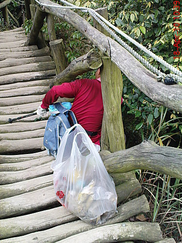不要亂丟垃圾啦!照片中的大哥撿垃圾很辛苦!我叫他小心