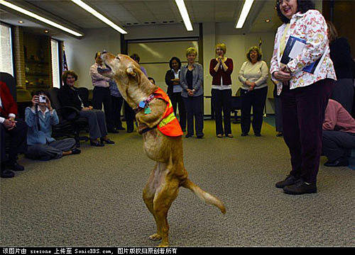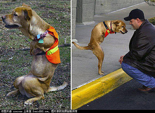 這隻用兩條腿走路的狗名叫Faith(信念),它出生時共有三條腿--兩條健全的後腿和一條開始萎縮的前肢(前肢後來用手術除掉)。出生不久的Faith並不能正常走動而只能躺在地上用兩爪推動身體,甚至連它的狗媽媽也因為覺得它是弱者而嘗試要殺死它。